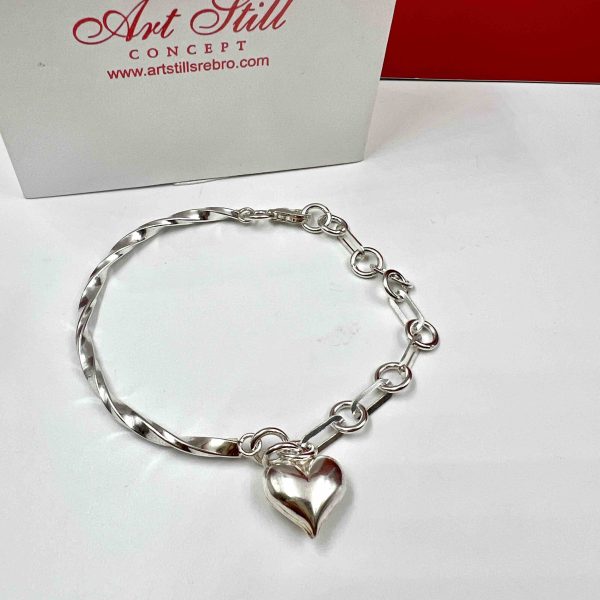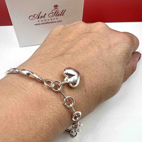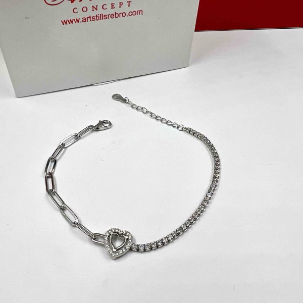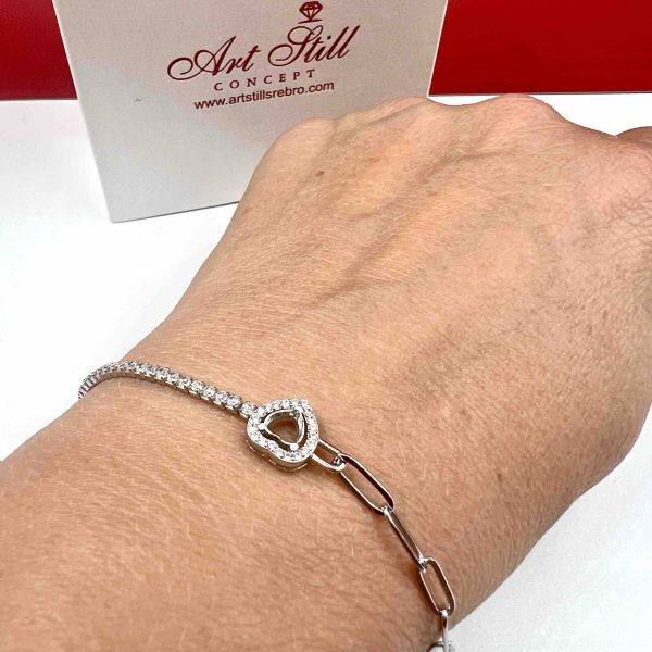 Srebrna ženska narukvica srce rodijum 294 N 316163