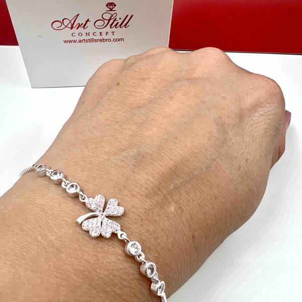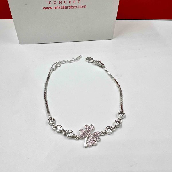 Srebrna ženska narukvica roze detelina 294 N 43017535